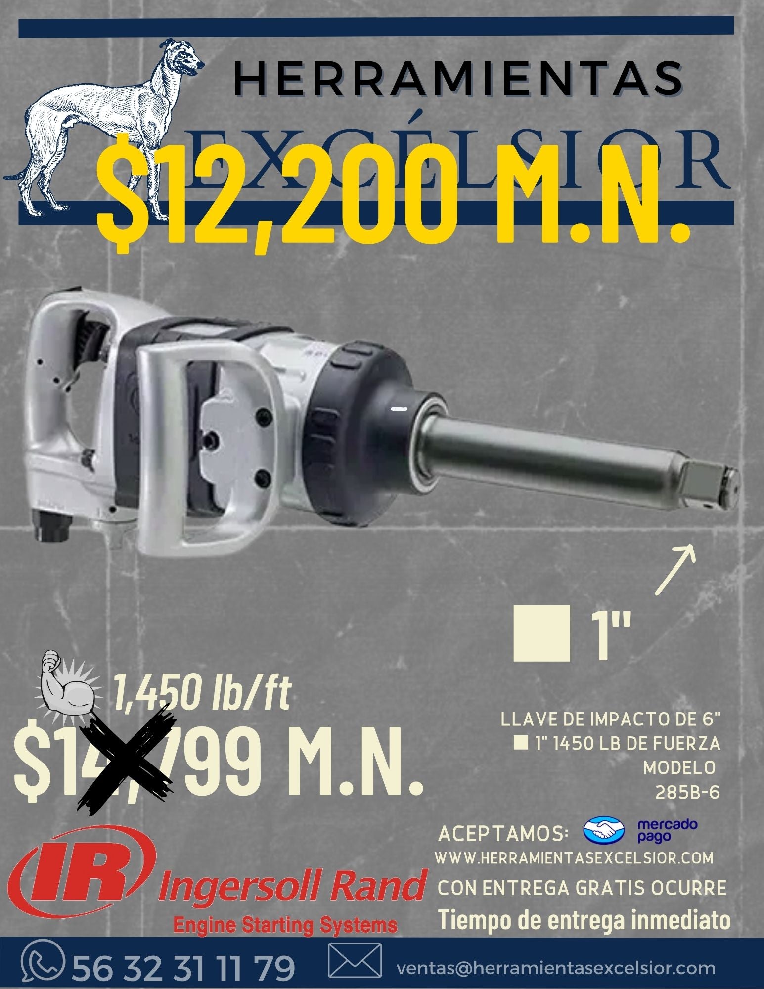 Llave de impacto de 1" INGERSOLL RAND 1475 LB/FT